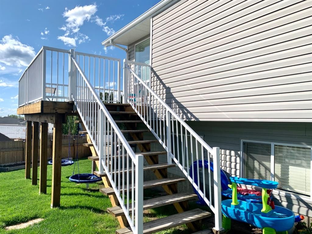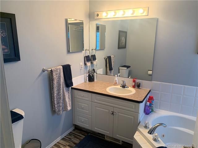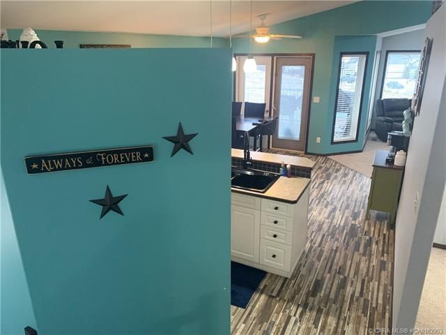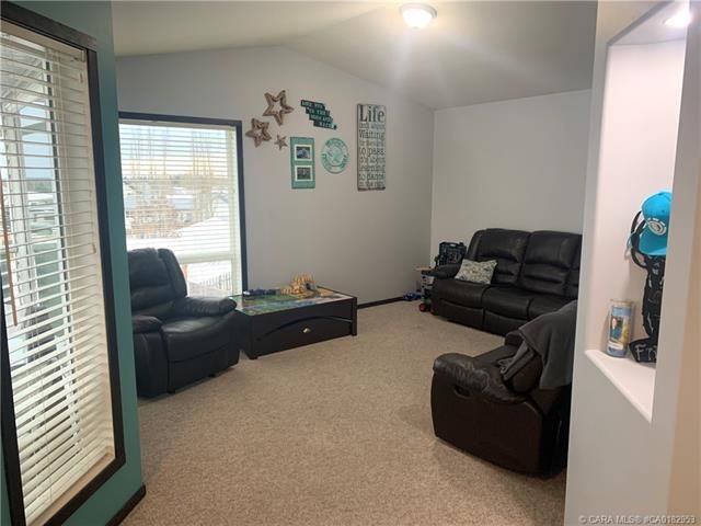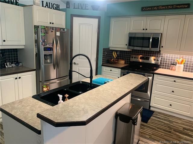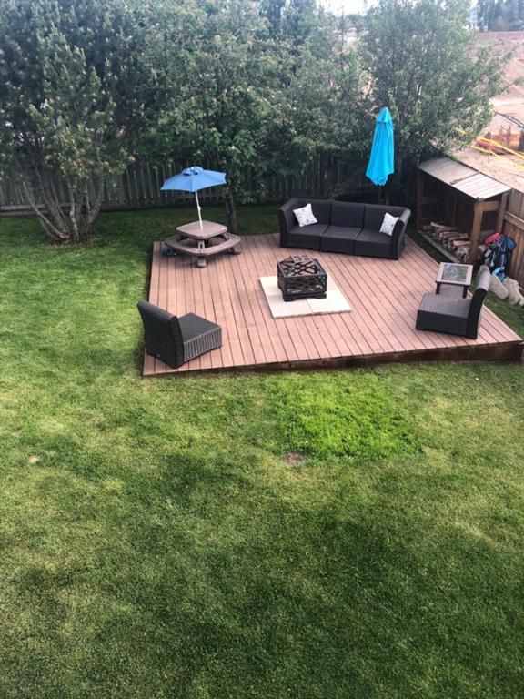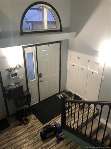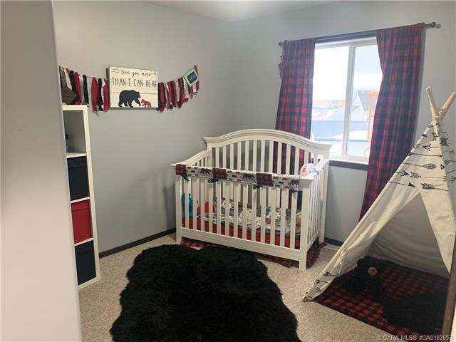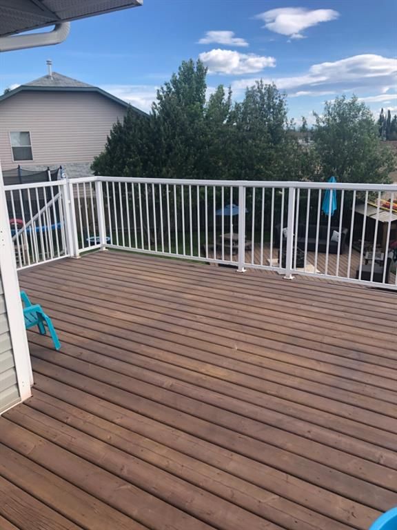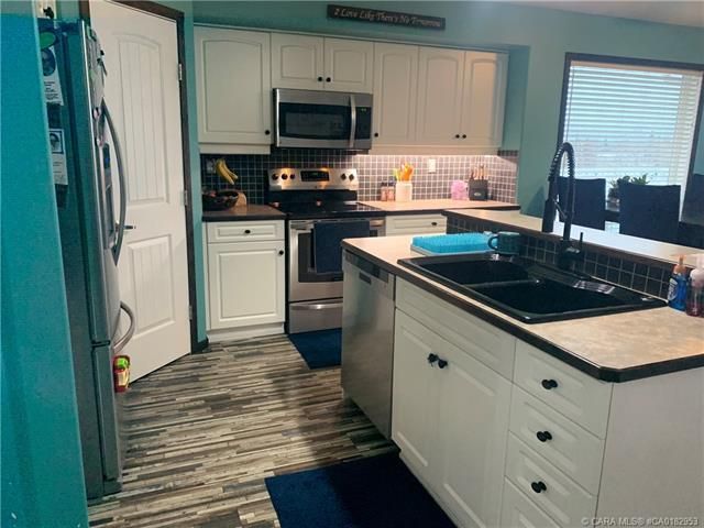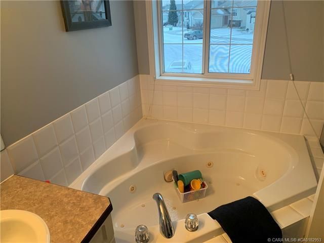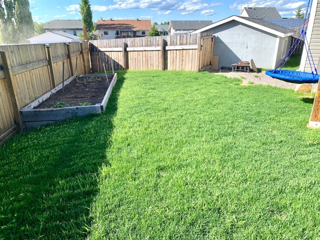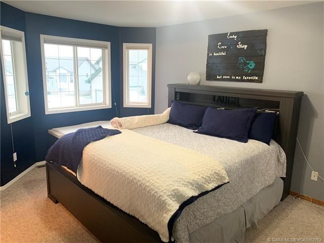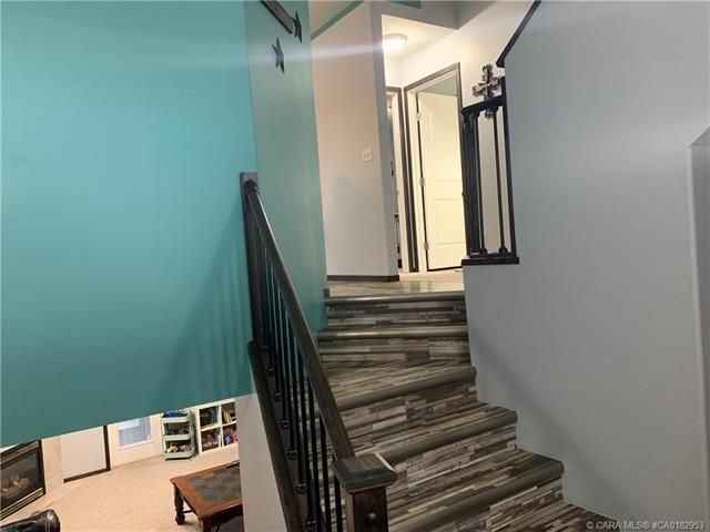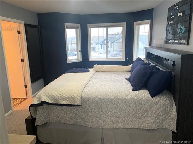 Updated Modern family home with a large pie-shaped mature yard! Beautiful large "L" shaped deck with west mountain view and gas-hook-up for BBQ. RV parking next to 12X16 shed with power/workbench. Yard is completely fenced for privacy with back alley access. This home has seen many upgrades; the main floor has recently been painted in attractive colors, all new trim, railings, doors, handles, and drop "n" done flooring. The bonus room above the garage is the master bedroom which features a walk-in closet and an ensuite with corner jetted tub! Two additional bedrooms on the main & 3-pce. washroom; Open style kitchen, dining and living room with newer appliances which leads to deck! Basement is a walk-out, ideal for a hot tub. The large family room is completed with a gas fireplace and another bedroom with an attached room, ideal for an older child which leads to 3-pce. bath. Exterior has all been updated over the years. This property sits on a cul-de-sac in the north end of town!